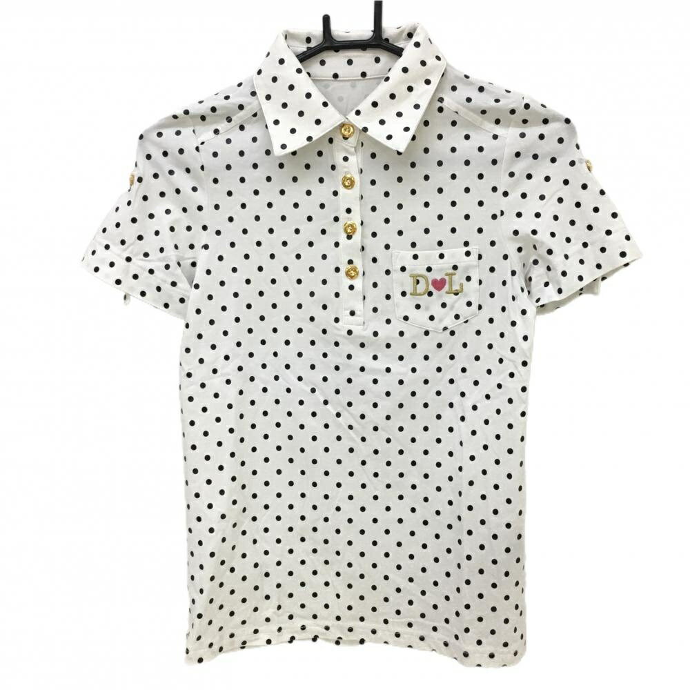 【美品】ルコック×デュラス 半袖ポロシャツ 白×黒 ドット 袖ロールアップ可 レディース M ゴルフウェア le coq sportif