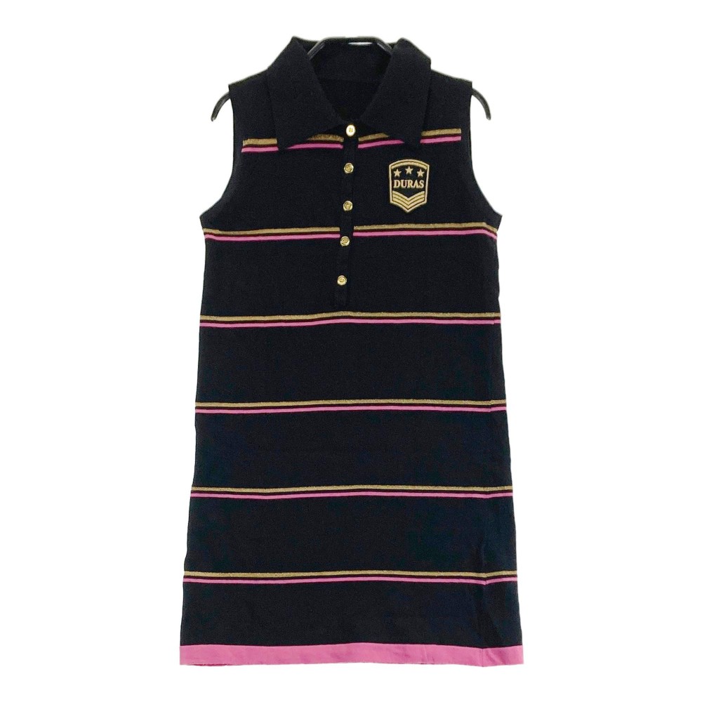 LE COQ GOLF ルコックゴルフ ×DURAS ノースリーブポロ ワンピース ボーダー柄 ブラック系 S 【中古】ゴルフウェア レディース