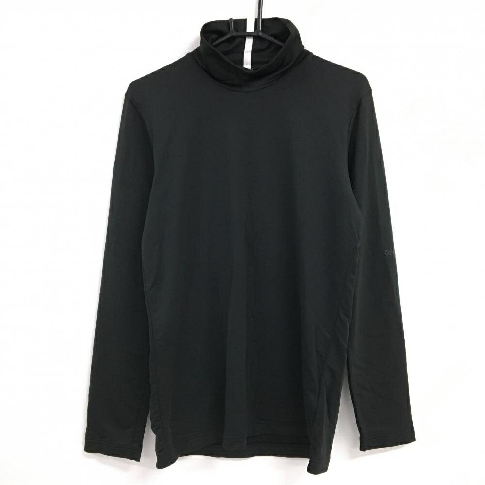 【美品】カルバンクラインゴルフ 長袖ハイネックシャツ 黒×白 極微起毛 袖ロゴ メンズ M ゴルフウェア Calvin Klein golf