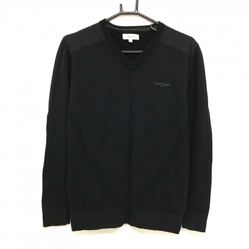 【超美品】カルバンクラインゴルフ セーター 黒 背面上布切替 Vネック ウール100% ニット メンズ M ゴルフウェア CalvinKlein