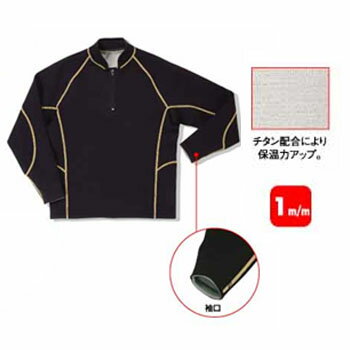 仕様/規格●素材:ジャージ+CRスポンジ(1mm厚)チタン入り●前ファスナー付●水の浸入を妨げる袖口仕様●適応サイズズ(単位/cm):M(身長162~168、体重56~65kg、胸囲82~90、胴囲74~84、腰囲90~94、肩巾41~44、長袖丈50~54)、L(身長167~173、体重61~70kg、胸囲84~95、胴囲76~87、腰囲92~96、肩巾42~45、長袖丈51~55)、LL(身長172~179、体重67~80kg、胸囲88~100、胴囲78~90、腰囲94~98、肩巾44~47、長袖丈53~57)、LLL(身長177~185、体重75~90kg、胸囲90~105、胴囲80~95、腰囲96~100、肩巾45~49、長袖丈54~58)●カラー:ブラック商品説明●1mm厚CRスポンジ+チタン入り保温力抜群●チタン製品の取扱上の注意:※製品内側の素材は従来品に比べて引裂等に弱い特性がありますので脱着時等の取扱いにご注意ください。※着用中、発汗等の水分により体がすべりやすくなるため、インナー等の着用をおすすめします。.商品属性●カラー:[ ブラック系 ]ジャンル識別情報:/g1045/g210/g302/mK46/※納期表示のご説明はこちら