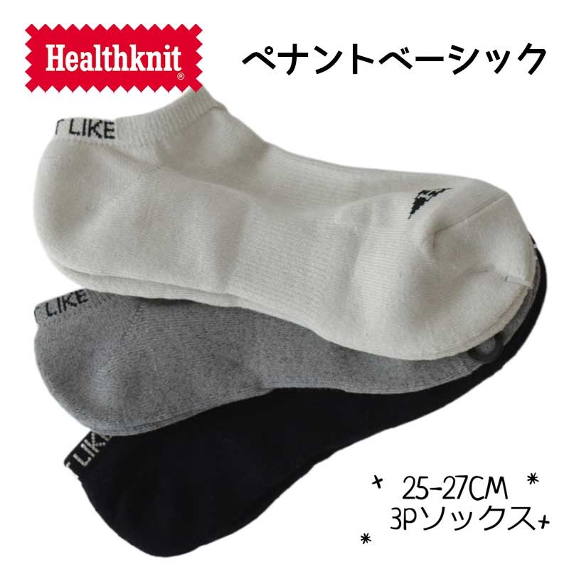 【土日祝配送可】 ヘルスニット ソックス 25-27cm メンズ 靴下 くるぶし Health Knit ペナント刺繍 ベーシック3Pソックス 3足セット アウトドア キャンプ カジュアルブランド おしゃれ小町