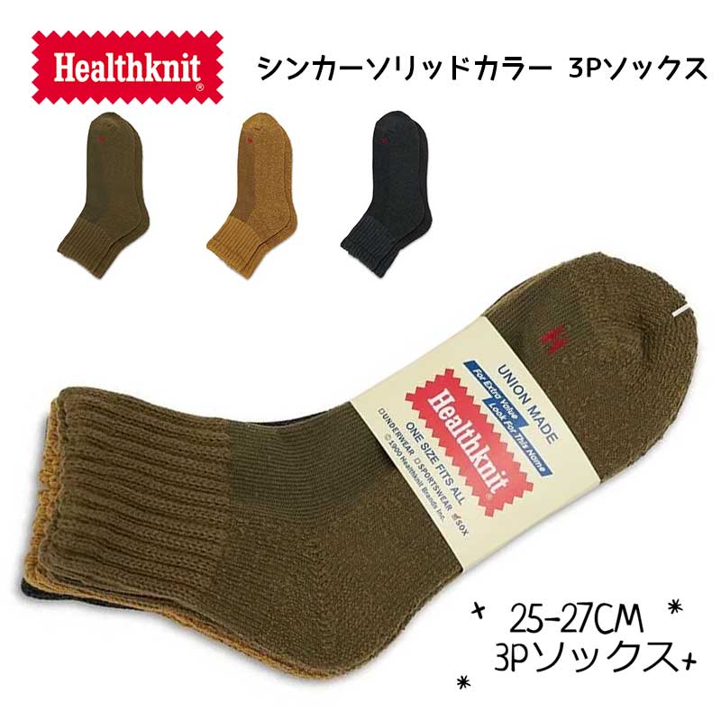 【土日祝配送可】 ヘルスニット ソックス メンズ 靴下 Health Knit シンカーソリッドカラー 3Pソックス クォーター丈 3足セット 25-27 アウトドア キャンプ カジュアルブランド おしゃれ小町