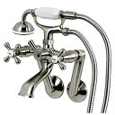 【中古】【未使用・未開封品】Kingston Brass KS269SN 3.37 - 8.5 in. Victorian Tub Mount Filler with Hand Shower & 5.75 in. Adjustable Spread Elbows, Satin Nickel