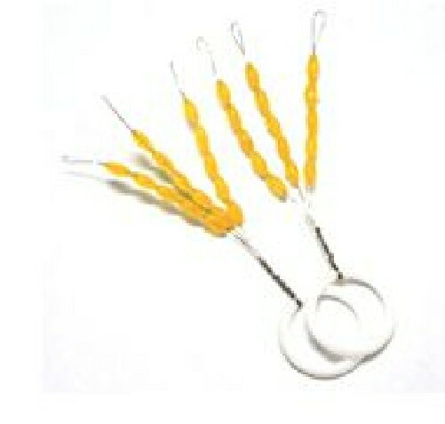 強度のある溶接タイプのソリッドリングと着脱が便利な平打ちタイプのスプリットリング付き。高品質ボールベアリングの採用で糸よれを防止します。●1袋5個入