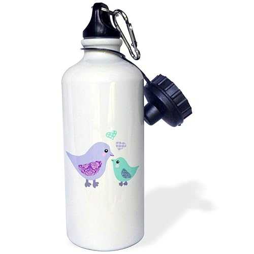 3dRose Cute Purple Mom Bird and Blue Baby Chick Boy-Kawaii Birds Mother and Child Son-for Mothers Day Sports Water Bottle, 21 oz, White