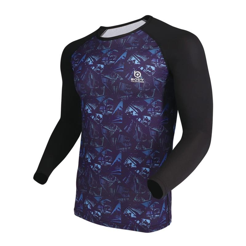 [おたふく手袋] 夏用インナー 長袖 丸首 [メッシュ 昇華プリント コンプレッション 消臭 吸汗速乾 メンズ]