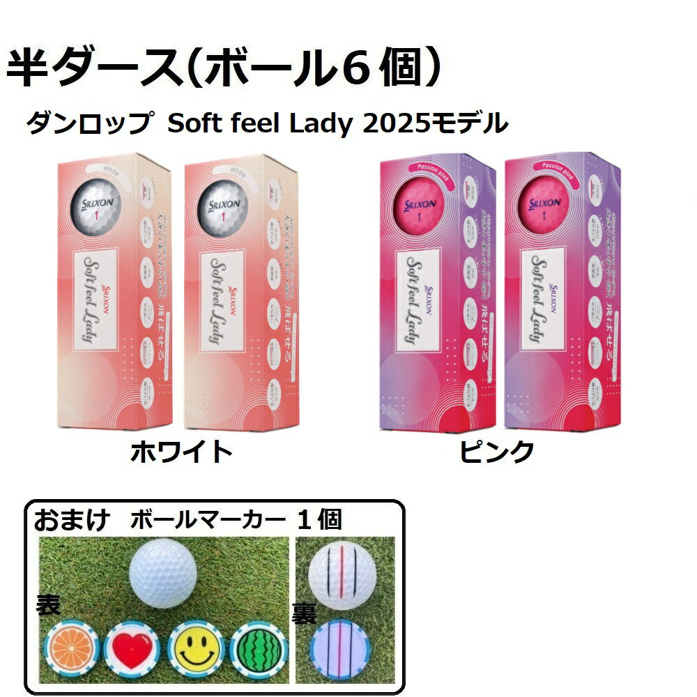 ダンロップ DUNLOP スリクソン SRIXON ソフト フィール レディー Soft feel LADY レディース ゴルフボール GOLF BALL 2025年モデル 半ダース 2スリーブ 白 ホワイト ピンク PINK おまけ ボールマーカー