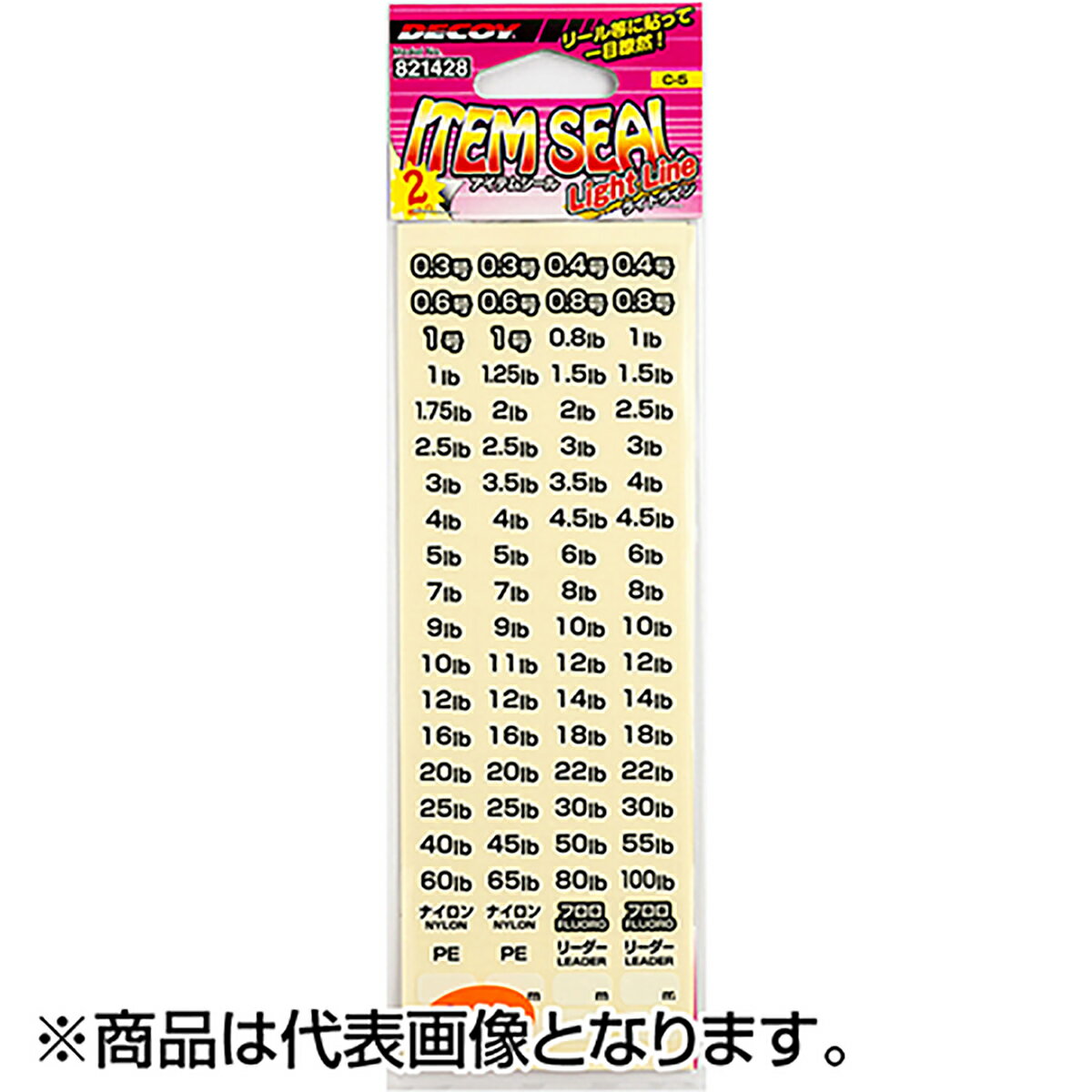 タックルをスッキリ整理!中身が一目でわかる!シンカーやフックを収納したタックルボックスや、さらにはリールやロッドに直接貼って、タックルを一目瞭然わかりやすく管理することができる号数シールです。★仕様・規格・寸法★「ライン」 …おもにショアで使用する細めのライン管理に最適。バス・ライトゲーム・エギング等に。SIZE:Light LineQTY:2