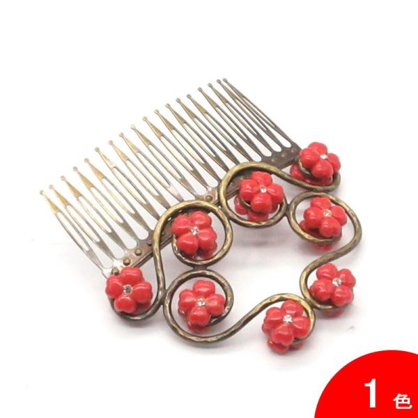 花のモチーフのペイネシージョ(小さな櫛) Amanda(アマンダ) サンゴ [フラメンコ用][スペイン直輸入][メール便]