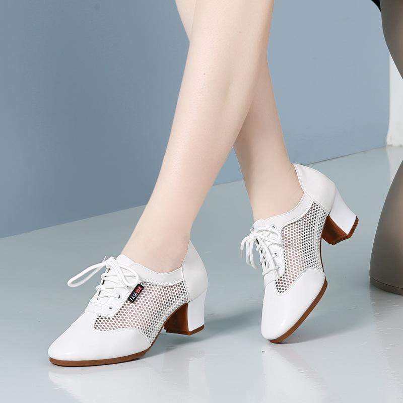 ダンスシューズ レディース 女性用 大人 通気性 軽量 ソフトソール 滑り止め ラテンダンス 社交ダンス 練習用 発表会 ミドルヒール メッシュ ゴム底 白 黒 オールシーズン