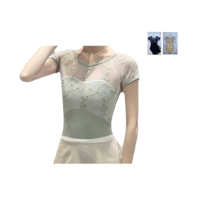 [プロダンス] ProDance ハーフカップ 半袖 ハーフ 刺繍 バレエレオタード お洒落 PLHA031MA (ブラック, L)