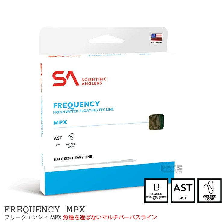 Scientific Anglers / サイエンティフィック アングラーズ FREQUENCY MPX フリークエンシィ MPX Scientific Anglers FREQUENCY MPX マスタリーシリーズで定番のMPXテーパーのフリークエンシィ版 高いコスパを誇るSAフリークエンシィにマスタリーシリーズで長年愛されているMPX(マルチパーパスライン)のテーパーが登場。0.5番手重めの設定でファストアクションのロッドにも対応。2段階のテーパー(コンパウンドテーパー)を持つベリーは空気抵抗の大きいフライをデリバリーするパワーと静かなプレゼンテーションを可能にする繊細さを併せ持っています。ドライフライフィッシングのみならず、ニンフィング、ストリーマーフィッシングとすべての釣り方に対応。トラウトのみならずパンフィッシュ、バス、サーモン、マスキーなど魚種も問いません。 全長85’、AST、ブレイデッドマルチフィラメントコア、ラインカラーはオレンジとモスの2種類、先端ループ付き。 Made in U.S.A. メーカー希望小売価格はメーカーカタログに基づいて掲載しています