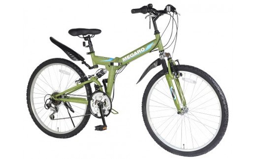 【ふるさと納税】MEGARO 防災対応26型18スピードノンパンク折りたたみマウンテンバイク 色:カーキ※沖縄・離島への発送は出来ません 自転車 防災対応 ノンパンク 折りたたみ 折りたたみ自転車 マウンテンバイク サイクリング 通勤 通学 おしゃれ