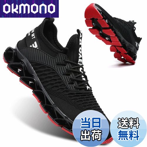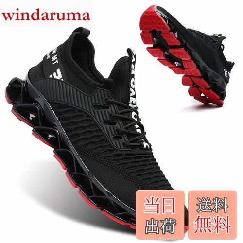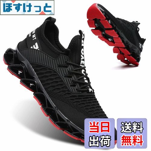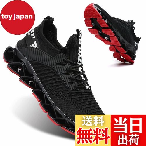 【送料無料】[Mevlzz] スニーカー メンズシューズ通気性ランニング靴男の子運動靴ウォーキングジョギングトレーニングシューズスポーツ靴 色:Aブラック レッド、サイズ:26.5 cm