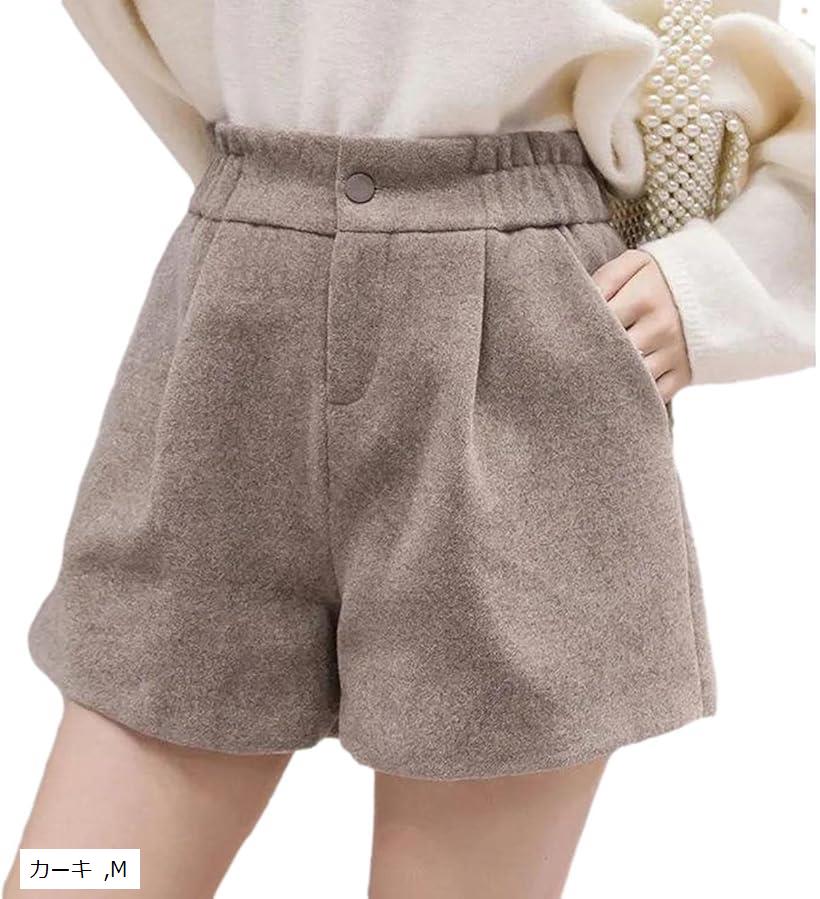【楽天ランキング1位入賞】スロウアンドメロウショートパンツ ハイウエスト シンプル カジュアル フランネル調 キレイめ M カーキ (カーキ, M)