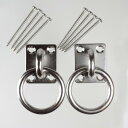 素材・材質:ステンレスセット内容:本体フック×2個(ステンレス)、木ネジ×8本(ステンレス)耐荷重:200kg(本体2個合計)サイズ:縦88×横60×高さ35mm※取り付けについて 室内で使う場合、最初に金具を取り付けておくとその後の設置、収納が簡単でおすすめです。6畳の部屋に取り付けた事例を下記で紹介しておりますのでご参考くださいませ。憧れのハンモックを自宅に設置しませんか。簡単取り付け金具セット 壁や梁の側面、柱にハンモックを設置するための金具セットです ※取付に関しては自己責任でお願い致します ※商品特性上大きな負荷がかかる為、金属疲労・摩耗が起こりえます ※使用時には必ず異常がないかご確認下さい ※お子様が使用される際は保護者が目を離さないようにして下さい ※事故についての責任は一切負いかねます
