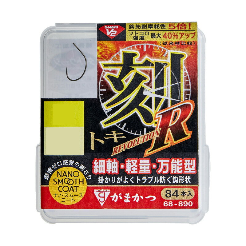 仕様表「G-HARD V2」採用により「刻」の実釣力がさらに進化!登場以来、高い人気を誇る「刻」に高強度素材「G-HARD V2」を採用。刻の細軸軽量で鈎先をやや内側に向けたハイバランス設計を踏襲しつつ、鈎先はG-HARD V2の高い耐摩耗性と特殊テーパーの採用により、長時間の使用においても鋭さが持続。高強度素材のため、追い気の強い野鮎のアタリや、釣れるサイズがばらつく放流河川等の良型に対しても余裕をもって対応。細軸でありながらも高硬度素材のためタワミが少なく、野鮎のアタックをロス無く鈎先に伝え、低摩擦表面処理「ナノスムースコート」と相まって鋭い刺さり込みを発揮。素材・形状・鈎先、全ての要素を再考することにより、実釣力に更なる磨きを掛けました。GAMAKATSU THE BOX G-HARD V2 TOKI Rがまかつ ザ・ボックス G-HARD V2 刻R●品番:68-890●号数:7●入数:84本●コーティング:ナノスムースコート詳細はこちら