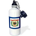 3dRose "Flag of West Virginia WV-US American United State of America USA. Farmer miner coat of arms wreath" Sports Water Bottle, 21 oz, White