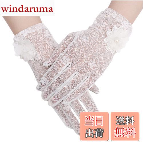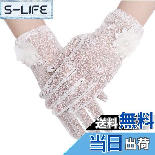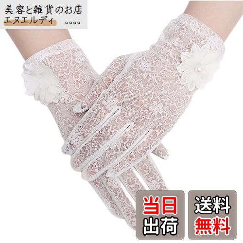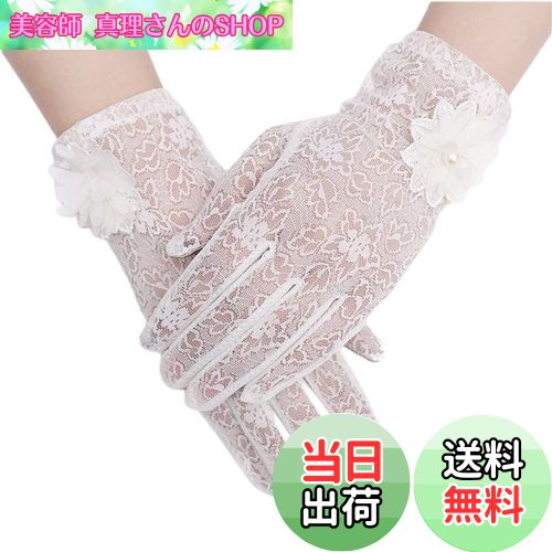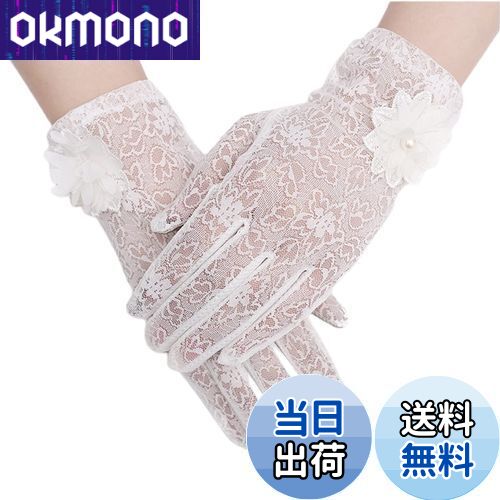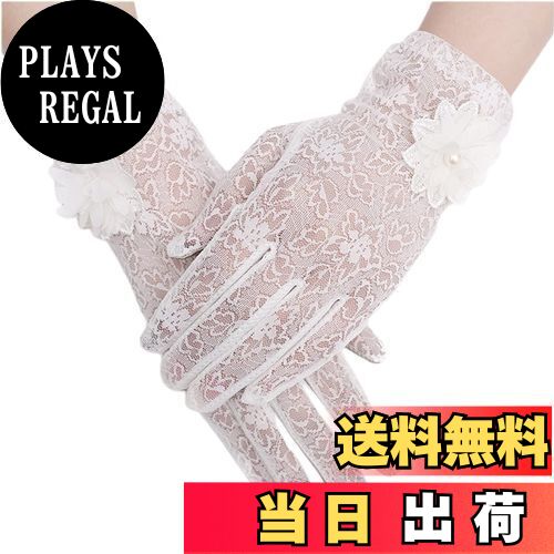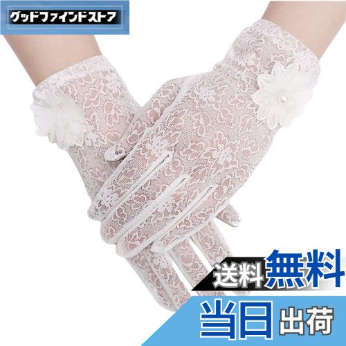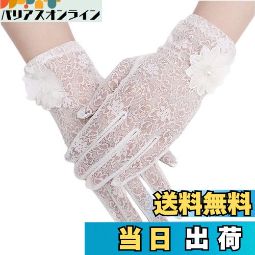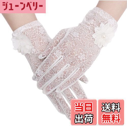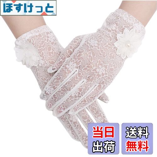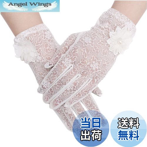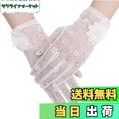 【送料無料】[Kingsie] レース 手袋 レディース 夏 グローブ 花柄 薄手 メッシュ スマホ対応 滑り止め付 UVカット 日焼け防止 紫外線対策 結婚式 運転用 春夏用 (ホワイト)