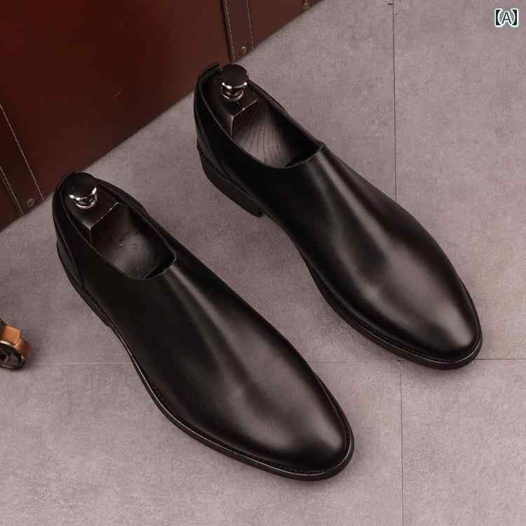 革靴 シューズ メンズ ポインテッドトゥ 靴 夏 革 通気性 柔らかい 紳士 韓国 フォーマル 結婚式 ブラック