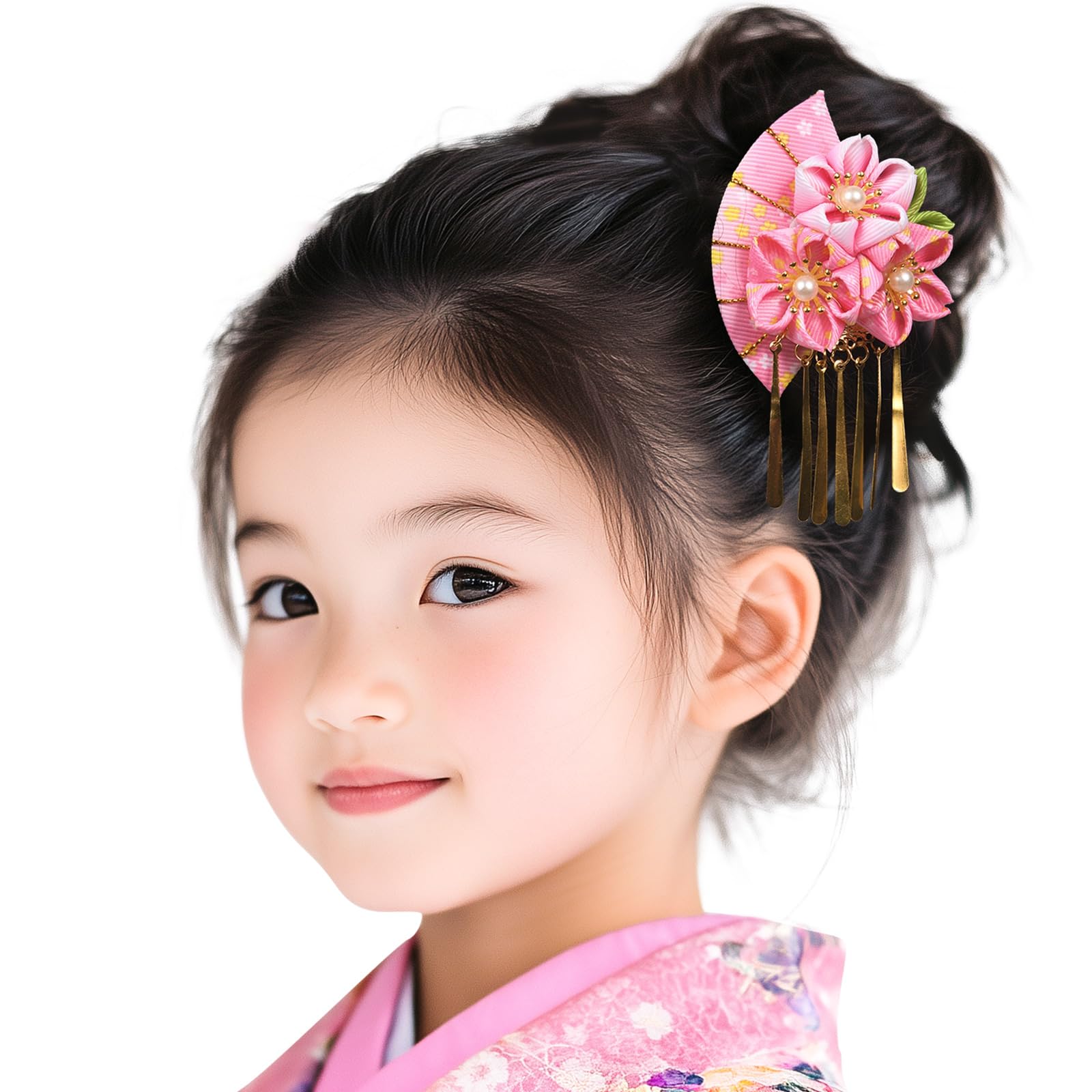 【送料無料】[OTAKUMARKET] 髪飾り 七五三 三歳 七歳 袴 ヘア髪飾り 和風 着物 和装 卒業式 つまみ細工 浴衣 花 成人式 振袖 キッズ 子供 こども 女の子 和装小物 結婚式 子供用髪飾り 和風アクセサリー (ピンク)
