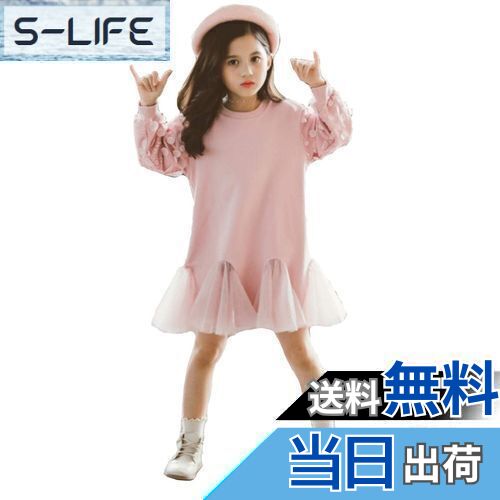 【送料無料】[VIISEN] 女の子 子供服 ワンピース 長袖 スウェットトップス お姫様 可愛い キッズ ワンピース カジュアル 韓国風 子供 洋服 通学 通園 パーティー 普段着 結婚式 発表会 110 120 130 140 150 160CM 色:ピンク、サイズ:160
