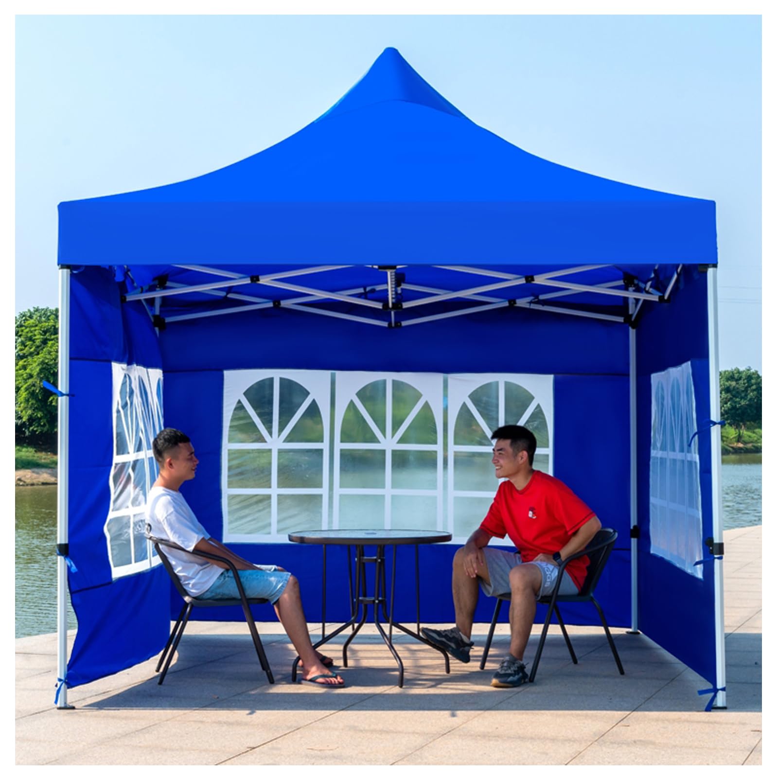 ワンタッチタープテント ポップアップキャノピー 3段階調節160-220cm UVカット サイドシート3枚 ドアシート1枚付き 耐水専用横幕 つ パーティー用折りたたみテント パティオ/アウトドア/結婚式のパーティーやイベントに 3X3M blue