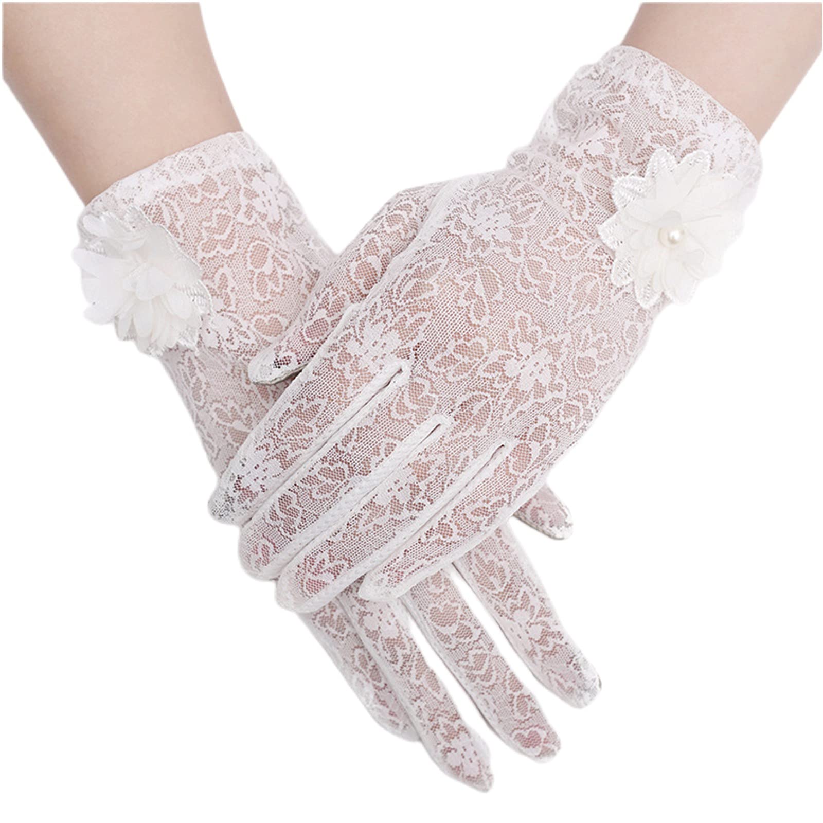[Kingsie] レース 手袋 レディース 夏 グローブ 花柄 薄手 メッシュ スマホ対応 滑り止め付 UVカット 日焼け防止 紫外線対策 結婚式 運転用 春夏用 (ホワイト)