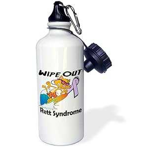 3dRose "Wipe Out Rett Syndrome Awareness Ribbon Cause Design" Sports Water Bottle, 21 oz, White