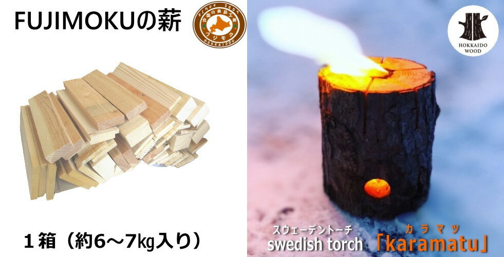 薪(約6〜7kg)とスウェーデントーチのセット販売 焚き木 焚火用 キャンプ用品 アウトドア 北海道産木材 ※送料無料!!