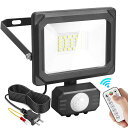 AkitoeLEDセンサーライト屋内/屋外使用可人感センサーLED投光器20W昼白色6500K2Pプラグフラッドライト100Vリモコン操作自動点灯/消灯超高輝度IP65防水仕様爆光防犯ライトガレージ庭玄関倉庫