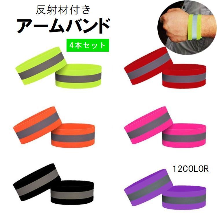 送料無料 アームバンド 4本セット 反射材付き 反射バンド リストバンド リフレクター ランニング ウォーキング 散歩 マラソン 安全対策 夜間 早朝 作業 男女兼用