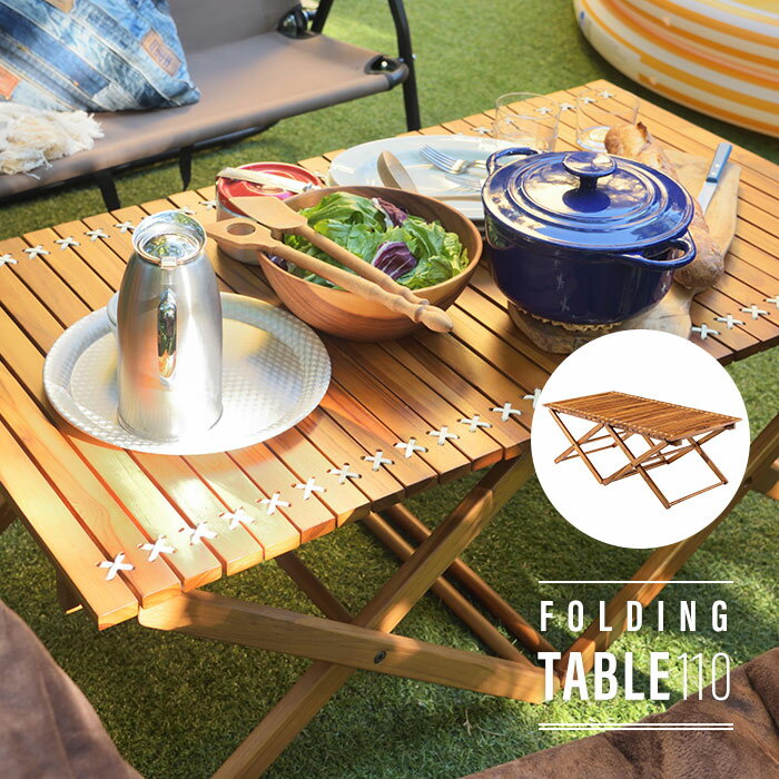 木製折りたたみテーブル 幅110cm アウトドアテーブル ロールトップウッドロールトップテーブル ローテーブル ロースタイル 本革 アウトドア レジャー キャンプ バーベキュー BBQ 低め コンパクト 省スペース ヴィンテージ おしゃれ[d]