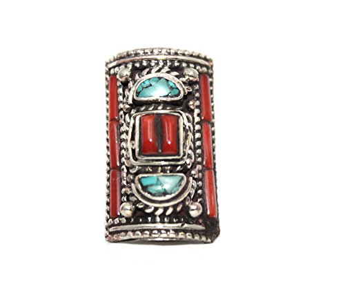 【中古】【未使用・未開封品】コーラルターコイズチベットネパールリング、リング、リング、ジプシーリング、Bohoリング