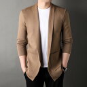 ニット カーディガン メンズ 男性用 トップス 長袖 スリム 韓国 リブ裾 春秋 薄手 タッチ 無地 前開き キレイめ カジュアル