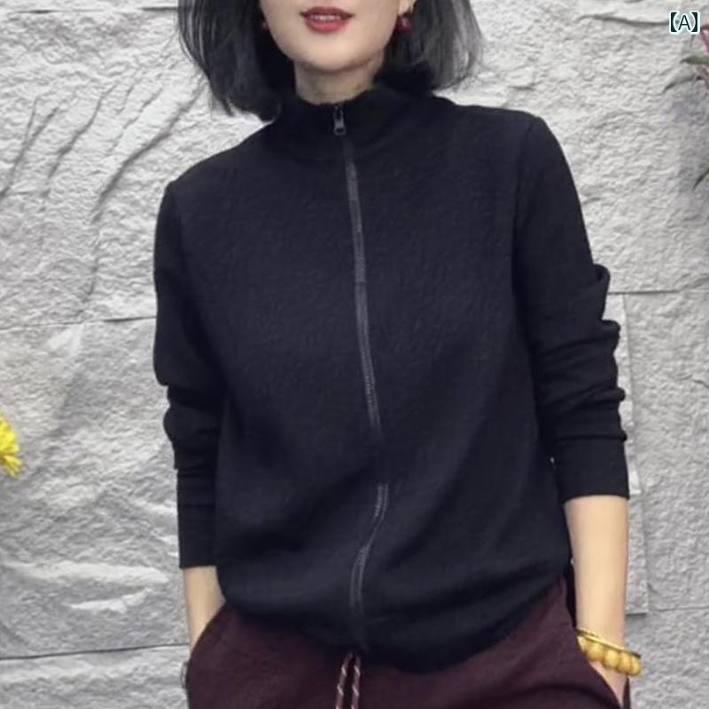 フリース トップス ジッパー 黒の ジッパー スタンドカラー 長袖 スウェットシャツ レディース 2025 春 大きいサイズ スリミング ファッション 多機能 エイジング カット トップス