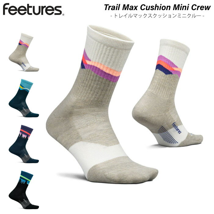 Feetures フィーチャーズ ランニングソックス TRAIL MAX CUSHION MINI CREW トレイル マックスクッション ミニクルー 厚手クッション 靴下 足裏サポート ユニセックス メンズ レディース トレイルランニング トレラン マラソン ドライ