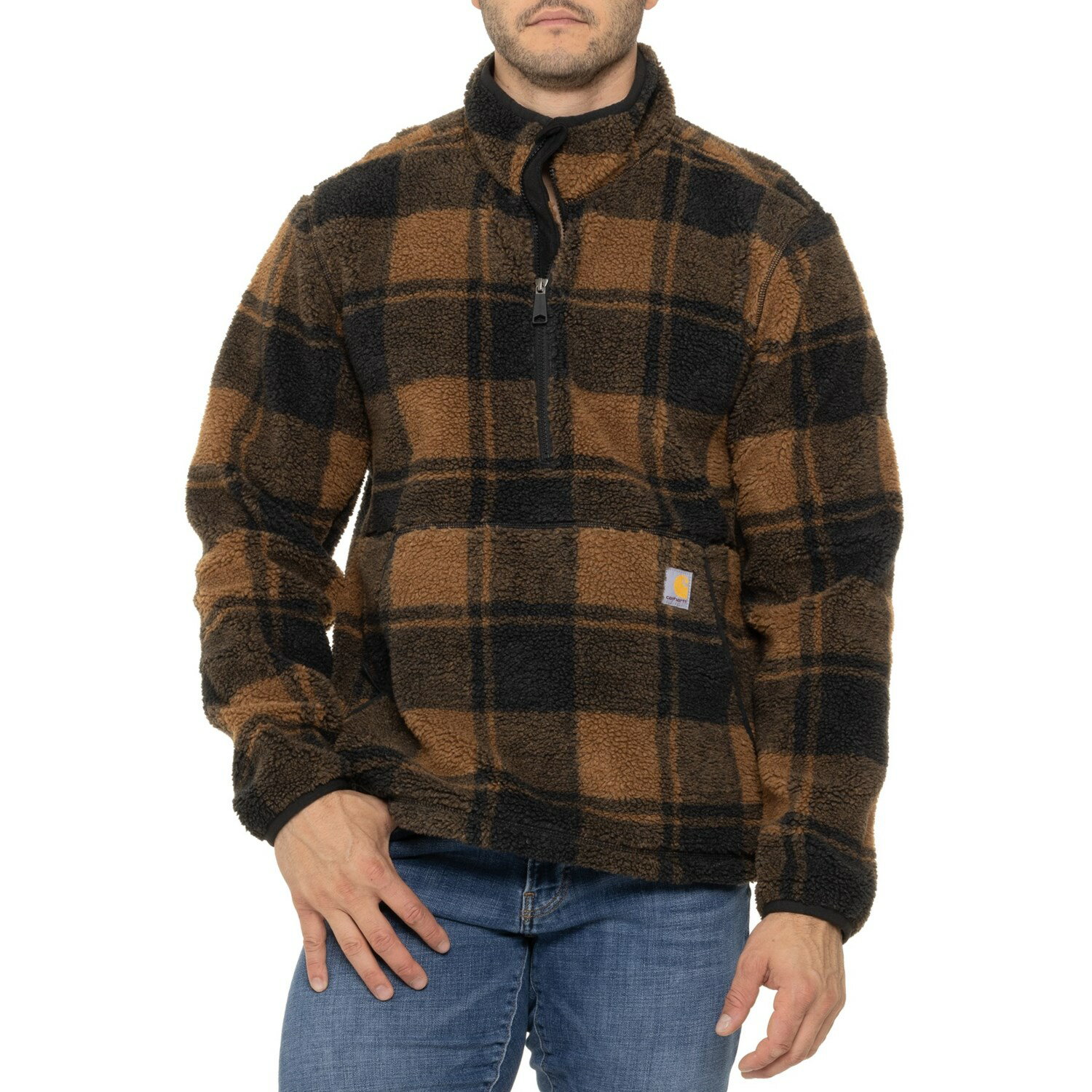 (取寄) カーハート ルーズ フィット フリース プルオーバー セーター - ジップ ネック Carhartt 106443 Loose Fit Fleece Pullover Sweater - Zip Neck Carhartt Brown/Black Plaid