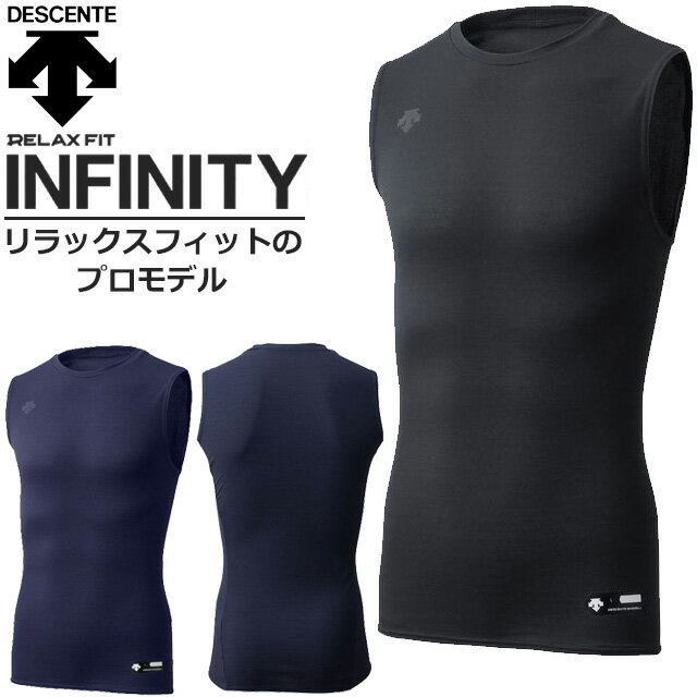 (☆)06 ネコポス デサント アンダーシャツ ノースリーブ 丸首 野球 軽量 ストレッチ リラックス フィット インフィニティー プロモデル DBMLJA00N DESCENTE ネイビー