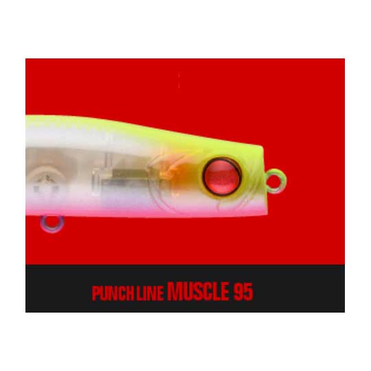 1ozのパンチラインは、シリーズ中最も重いモデルとなるが、ウェイトアップにありがちである大味な味付けではない。飛距離は当然ながら、比較的足場の高いゲームが多い磯や防波堤などでも水平フォールの姿勢を維持できるようなウェイト配分となっており、ステイさせて食わせる事が可能。激流ディープやサラシの中における操作性も高いが、通常のミノーではターゲットまで届かないような状況、例えば河川やサーフなどで見られる遠投必須の場合なども含め、場面を問わずに使用する事も出来る。 [全長] 95mm [重量] 28g [タイプ] ファストシンキング [アクション] S字スラローム+ローリングフォール [フック] #4