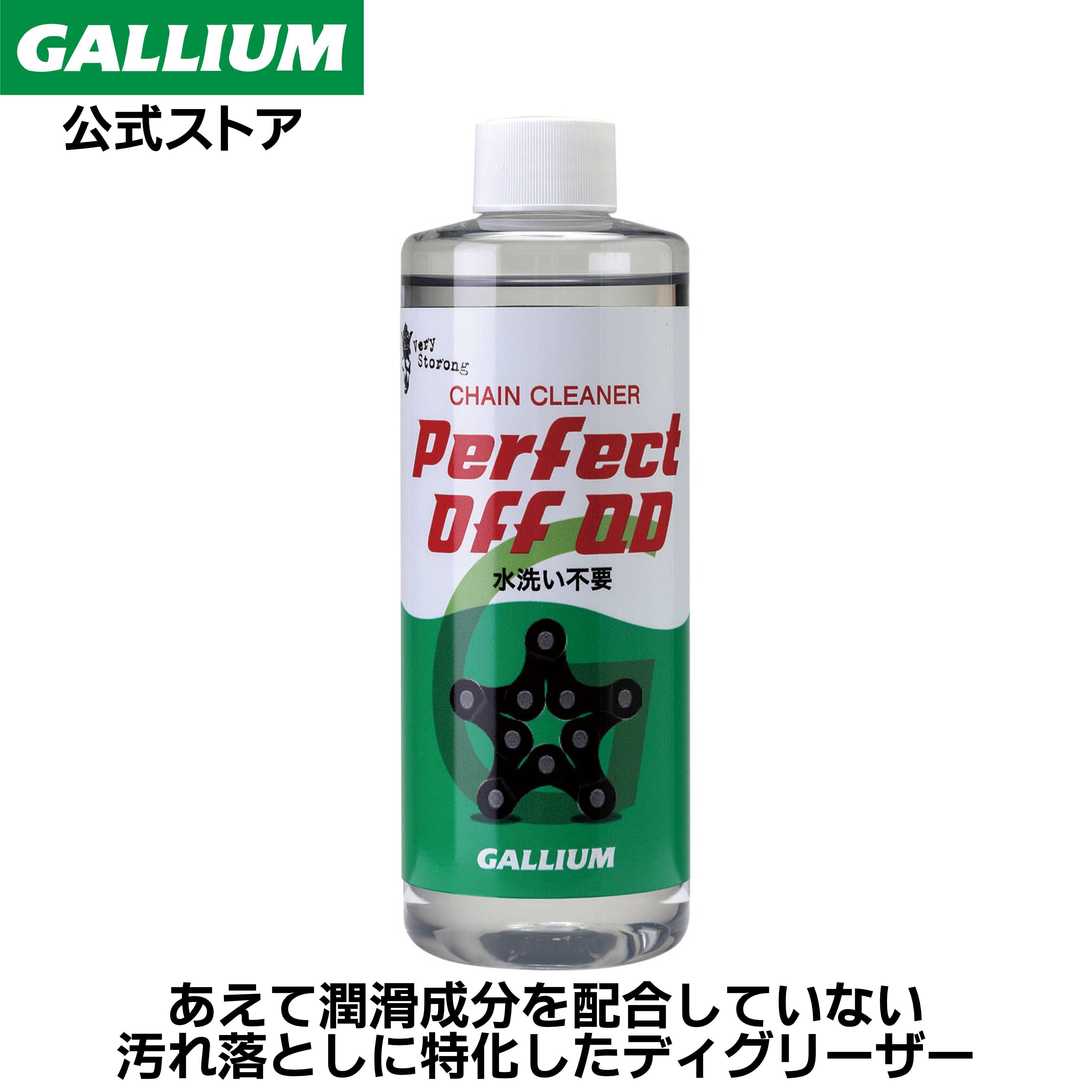 商品情報名称自転車チェーン用クリーナー容量300mL注意事項・自転車のチェーン以外には使用しないでください。・作業は基本的に屋外で行ってください。やむなく屋内で行う場合は、窓を開け換気に十分に注意してください。・ベアリングやフレーム、フロント / リアウォークなど、ドライブトレイン以外の部分にはご使用ならないでください。・屋内で行う場合は壁や床の養生、作業する人は軍手・グローブを着用し、汚れてもいい服装で行ってください。・ご使用後はボトルのキャップをしっかりと締めてください。・バーナー、ストーブ、タバコ等の火気のある場所では使用しないでください。・子供やペットの前では使用しないでください。・飲めません。・作業後は必ず石けんで手を洗ってください。保管・子供やペットの手の届かないところに保管してください。・直射日光のあたる場所を避け、常温で保管してください。この商品は Perfect Off 300(300 mL)GALLIUM ガリウム 自転車 チェーン クリーナー ディグリーザー ポイント 潤滑成分をあえて配合せず、チェーンやギア等に付着した汚れや古くなったルブを完全に取り除くことに特化したディグリーザー。 『ドブ漬け』に適した遅乾性クリーナーは作業性に優れ、汚れをパーフェクトに除去できるので、ルブ・オイルの性能をより実感できます。 ショップからのメッセージ 納期について 4
