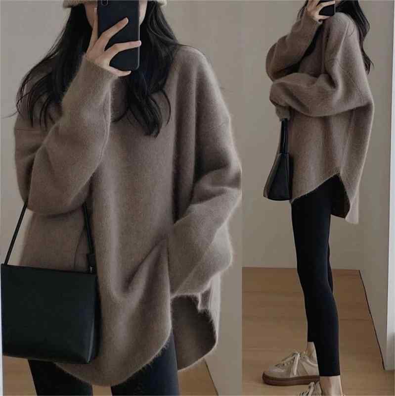 秋冬 レディース ウール100% セーター プルオーバー ニット ベースレイヤー 中長丈 ゆったり リラックス風 休闲 カジュアル