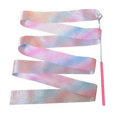 ダンスリボン 4m ラメ レインボー 2本 持ち手 ピンクドットグリッター グラデーション【定形外郵便のみ送料無料】4メートル 新体操リボンセット 体操専用子供の専用スポーツ用具
