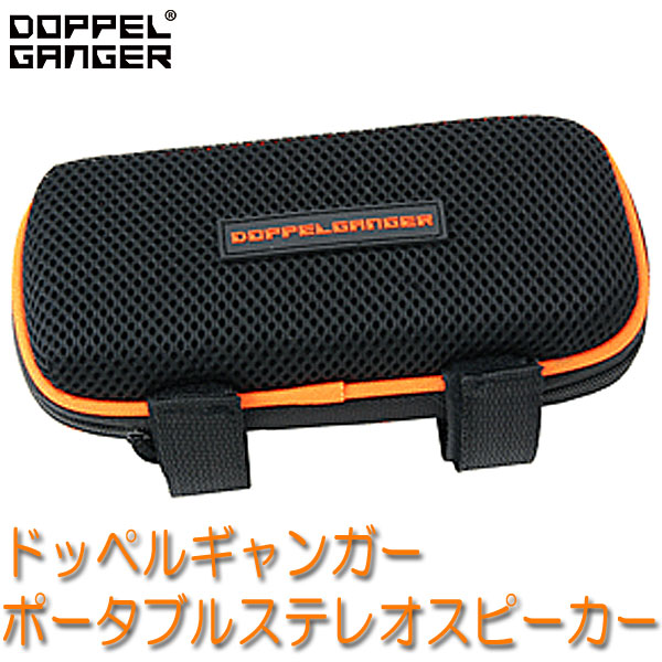 ドッペルギャンガーポータブルステレオスピーカー 単三形乾電池2本で駆動する携帯型ポータブルスピーカー。 本体外側はポリエステルメッシュ素材を採用し、軽さと強度を両立しました。 様々なオーディオ機器に対応する3.5mmステレオミニプラグ。 商品説明 サイズ (約)200×100×高さ85mm 材質 外側:ポリエステルメッシュ、ナイロン1680D 内側:構造材 EVA 電源 外側:ポリエステルメッシュ、ナイロン1680D 内側:構造材 EVA 重量 (約)230g ※電池含まず プラグ形式 3.5mmステレオミニプラグ ケーブル長 220mm 周波数特性 150-20,000Hz インピーダンス 4Ω スピーカー直径 40mm 実用最大出力 3W(1.5W×2) ※モニターの発色の具合によって実際のものと色が異なる場合がございます。ドッペルギャンガーポータブルステレオスピーカーBS-1 単三形乾電池2本で駆動する、携帯型ポータブルスピーカー。 外側にはポリエステルメッシュ素材を採用し、軽さと強度を両立しました。3.5mmステレオミニプラグ出力を持つポータブルオーディオ機器に対応します。本体内側の収納スペースに接続したオーディオ機器を収納することが可能で、大切なオーディオ機器を破損や盗難から守る役割も果たします。カードなど小物を収納できるポケットも装備しました。本体外側にはベルクロテープが取り付けられており、自転車やバイクのハンドル、その他様々な場所へ取り付けることが可能です。ケースは型崩れしにくいハードタイプです。