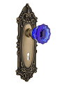 【中古】【未使用・未開封品】Nostalgic Warehouse 726563 Victorian Plate Interior Mortise Crystal Cobalt Glass Door Knob in Antique Brass, 2.25 with Keyhole