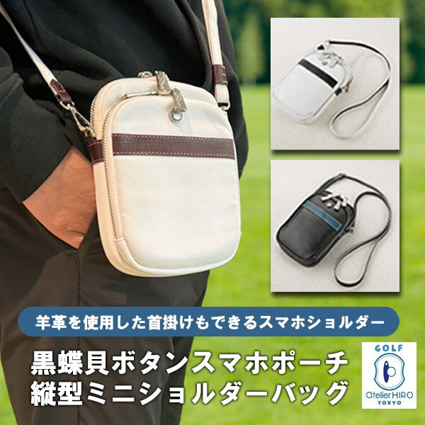 【着後レビューで1000円クーポンGET!】 黒蝶貝ボタンスマホポーチ縦型ミニショルダーバッグ スマホポーチ マルチケース ショルダーバッグ ネックポーチ 携帯ポーチ 財布 革 羊革 プレゼント ギフト