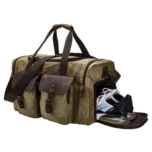 【高品質の素材】防水性と耐久性があるオイルワックスキャンバスと最高品質のクレイジーホースレザーで作られています。高品質の素材は、長持ちする耐久性を保証します。高密度キャンバスは、タイトなダブルニット織りで作られた純綿で作られ、丈夫で、耐摩耗性があり、傷がつきにくいです。クレイジーホースレザーは、上層の最高層の牛革素材で作られており、厚さ2.5mmで、頑丈で耐久性があります。 【特大ダッフルバッグ】このトラベルバッグの大きさにびっくりします。大きなメインコンパートメントと様々なインナーポケットが洋服や旅行の必需品にぴったりです。靴の仕切りもあります。3〜4日の週末や出張に最適で、飛行機に持ち込みにもできます。 【ダッフルのサイズ】このトラベルバッグのサイズは54.1cm(L)*32cm(H)*25.4(W)で、内側に大きなメインコンパートメントと2つのジッパーポケットと一つのオープンポーチがあります。外側には2つのスタイリッシュなジッパーポケットが付いて、携帯、財布、充電器、ケーブルで簡単に入手できます。 【簡単で快適な使用】ハンドルは丸くてとても快適です。