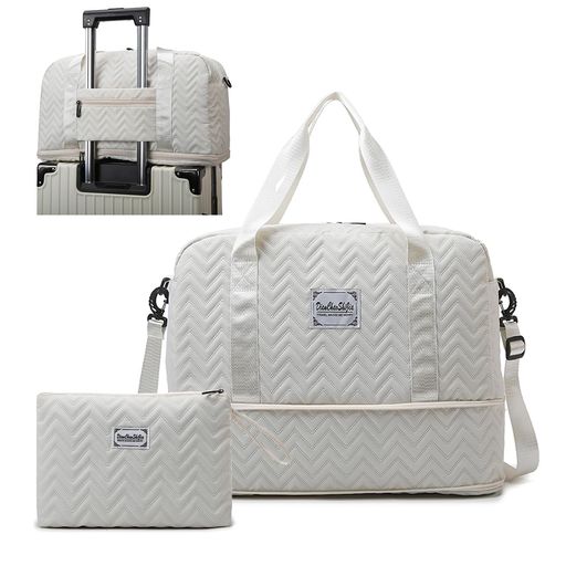 【ボストンバッグ大容量】レディース用ボストンバッグのサイズは48cm(長さ)x24cm(幅)x39cm(高さ)、重量:600gです。外側4個(メインポケットx1、小物収納バッグx2、防盗ファスナーポケットx1)内側3個(サイドポケットx2、乾湿分離ポケットx1)合わせ7つのポケットがあります。様々なカラーがあり、拡張可能、小分けパック付き、男女ともに実用性とデザイン性を兼ね備えています。日常の必需品だけでなく、スポーツやフィットネスの必需品を収納できるスペースも充実しています。底部はジッパーで拡張機能を隠し、底部は10cm拡張可能で、必要に応じて容量を調整できます。 【超便利・4WAY】飛行機での移動に最適なキャリーバッグです。スーツケースに固定することも可能で、空港での移動も簡単になります。修学旅行、個人旅行や出張の搭乗用バッグとして最適です。また、斜め掛け、肩掛けと手提げの3way仕様を設け、便利で実用性が高いです。ビジネスや個人旅行に最適な、週末外出用トラベルバッグです。 【高品質な素材】このバッグは高密度の防水生地を使用しており、傷がつきにくく、速乾性があり、お手入れも簡単です。
