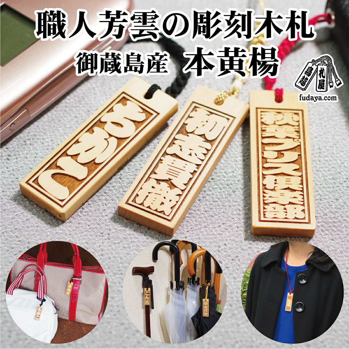 商品説明 名 称 ストラップ・ネックレス〈小〉彫刻木札【名入れ等】御蔵島本黄楊(フダヤドットコム.二丁纏) 容量 本黄楊 二丁纏サイズ1個 ・正絹根付紐ストラップ ・ネックレス用首掛け紐 ・桐箱入(スリーブ・手提げ袋) ※ネックレスサイズ:女性、子供向け (男性には小さ目) ※ストラップサイズ:縦60mm×横20mm×厚み5mm ※紐カラー:赤、黒、からし、えんじ、松葉、紺 ※和柄:宝づくし、とんぼ、さくら、吉原つなぎ ※彫刻:表面に8文字まで(アルファベットは横書き12文字まで(大文字小文字区別有)) 説明 =========================== ※ご希望の彫刻する文字を備考に入力してください。 (8文字まで / アルファベットは横書き12文字まで) =========================== 【 愛着を持って長くお使いいただくために 】 20年以上の月日をかけて追求した「塗装を一切せず、丁寧に磨き上げた、無垢の生木で作られた彫刻木札」。 一番人気でお奨めの素材「御蔵島産の本黄楊(ほんつげ)」木札をご用意しました。 物が分かる目上の方への贈答用にも遜色ない素材。 最高峰の質感を誇る『御蔵島産(東京都)』の中から、さらに厳選した素材を使用しております。 極上の手触りと経年変化をお楽しみ頂けます。ぜひ手に取ってご覧ください。 「二丁纏サイズ」は、鞄等のワンポイントに大き過ぎず小さ過ぎず程よいサイズ。 首掛けネックレスとしては、男性にはやや小さ目、女性やお子様に良くでております。 バックなどへ、しっかりとした取付けを要する時は、首掛け用の紐を切るなどしてご利用ください。 ※天然素材のため、木目には個体差がございます。 ※職人の手作業による製材ですので、寸法は約寸です。 【思いを表現する木札づくり】 フダヤドットコムでは、皆さまにたくさんの福が訪れるように、災いが訪れないように、大切な絆がさらに太く強くなるように、願いを込めて木札を作り続けています。 職人芳雲が20年以上の月日をかけて追求した技術に、お客様の大切な想いが加わり、木札という「作品」ができあがります。 癒しやぬくもりのために欠かせないこと ■「一期一会」の精神で厳選された素材 木札の素材となる木材は、必ず自分の目で確かめて仕入れています。 木目や節目は千差万別。たとえ表面は良くても、内部の木目が木札に向かなかったり、彫刻の仕上がりがよくなかったりする場合もあります。 自然の素材ですから、ひとつとして同じものはありません。断面などの限られた情報から良質な素材を見極めるべく、仕入れでは常に一期一会の精神で木材に向き合っています。 ■「徹底した磨き」で生まれる唯一無二の温もり 木は磨けば磨くほど光沢を増し、触ったときに温もりを感じさせます。 表面の細かな凸凹を削ぎ落とせば、汚れがたまらず長持ちし、使い込んだときの味わいも生まれるのです。 下磨きでは3〜4段階に分けてヤスリで表面をならし、彫刻後の仕上げ磨きでは、素材の質感に見合った方法で磨きをかけていきます。 手間を惜しまず、時間をかけて丁寧に磨き上げられた木札は、指で触れたときに「あっ」と声が漏れるはずです。 ■「神は細部に宿る」一文字ずつ調整したデザイン 木札の枠いっぱいに彫刻された文字には「隅から隅まで福がたくさん入りますように」という願いが込められています。ですが、単純に文字のサイズを大きくするだけでは、隙間は十分に埋まりません。 ご注文をいただいてから、太さや間隔を一文字ずつ調整し、複数の文字を並べたときのバランスを考えて配置を行います。 できるだけ大きく、それでいて野暮ったくならないよう、スッキリした表現を心がけて。 世界で一つしかない、あなただけの木札を作るために。 《裏面の柄の意味とおすすめ》 選べる裏面の柄は職人芳雲のオリジナル、既存の柄と違い飽きがこないと好評です。 ご自身用はもちろん、節目の贈答用にもご利用ください。 【宝づくし】 日本古来の宝物を集めた縁起の良い画。 開店、開業祝・周年祝・結婚祝・出産祝・歳のお祝いなど、幅広く人気の柄です。 【とんぼ】 連戦連勝の願掛柄け、トンボは前にしか進みません。 スポーツに限らず勝負ごとに接する方に人気の柄です。大願成就の願掛けに。 【さくら】 日本を代表する国花、散り際は潔く!武士道を表す柄で男性にも人気です。 卒業や勇退から、桜咲くスタートまで幅広く意味のある柄。 【吉原つなぎ】 江戸時代に生まれた粋な柄。 鎖を繋いだような柄は、良縁や絆を豊かにすると考えられるようになりました。 提供事業者 フダヤドットコム 地場産品に該当する理由 台東区内の店舗で、職人蒲生芳雲一人で製造をしており、相応な付加価値が生じているため。 ※画像はイメージです。 ・ふるさと納税 よくある質問はこちら ・ふるさと納税 による寄附申込みのキャンセル、 ふるさと納税 返礼品の変更・返品はできません。あらかじめご了承ください。「ふるさと納税」寄附金は、下記の事業を推進する資金として活用してまいります